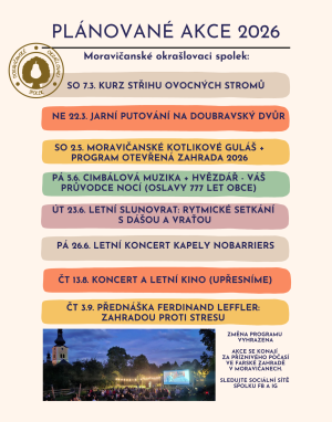 Pořadatelé srdečně zvou na připravované akce v roce 2026,