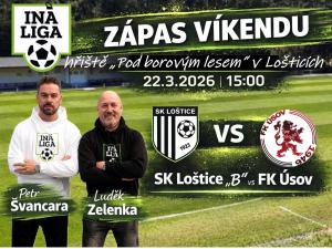Pozvánka pro občany Moravičan. V Lošticích se odehraje mistrovské utkání Loštice B proti celku Úsova. Na zápas dorazí i pořad Iná liga, který moderují Petr Švancara a Luděk Zelenka. Přijďte si užít fotbalovou atmosféru a podpořit hráče.