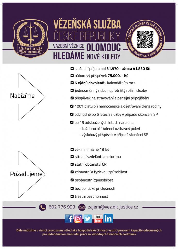Vězeňská služba, vazební věznice Olomouc hledá nové kolegy